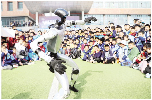 图为同学们全神贯注地观看机器人表演。