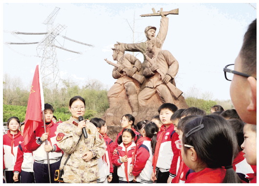图为同学们在张家店战斗烈士陵园聆听工作人员讲战斗故事。 本报记者 田凯平 摄