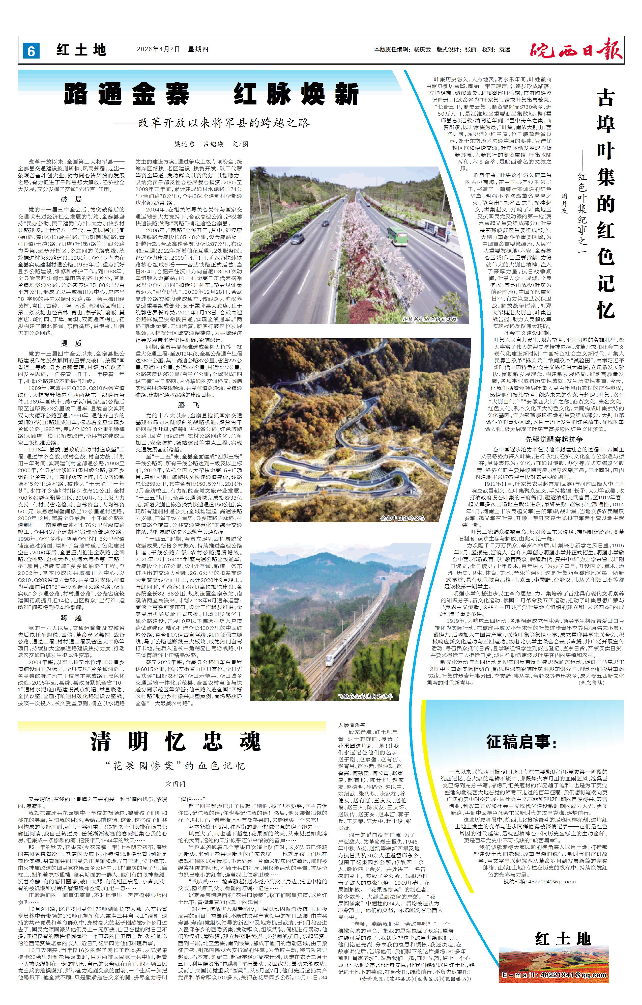 我们诚挚期待大家以新的视角深入这片土地,打捞那些建设年代的赤诚、改革浪潮的锐气、新时代的奋进故事,用文字串联起皖西从革命岁月到发展新篇的完整脉络,让《红土地》专栏在历史的纵深中,持续焕发红色的光彩与力量。