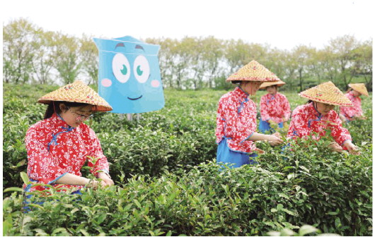 图为采茶姑娘采摘头茬六安瓜片新茶。 本报记者 张世巧/文 通讯员 张军/图