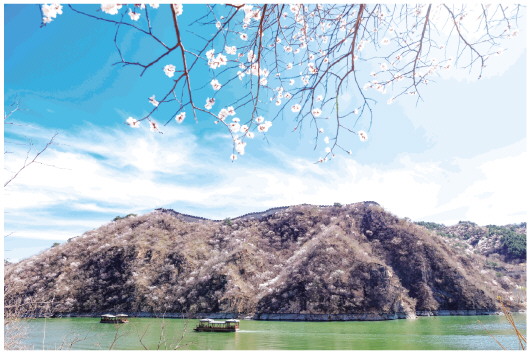 仲春时节,北京怀柔黄花城水长城边,山花竞相绽放,与长城交相辉映,构成一幅壮丽的春日画卷。