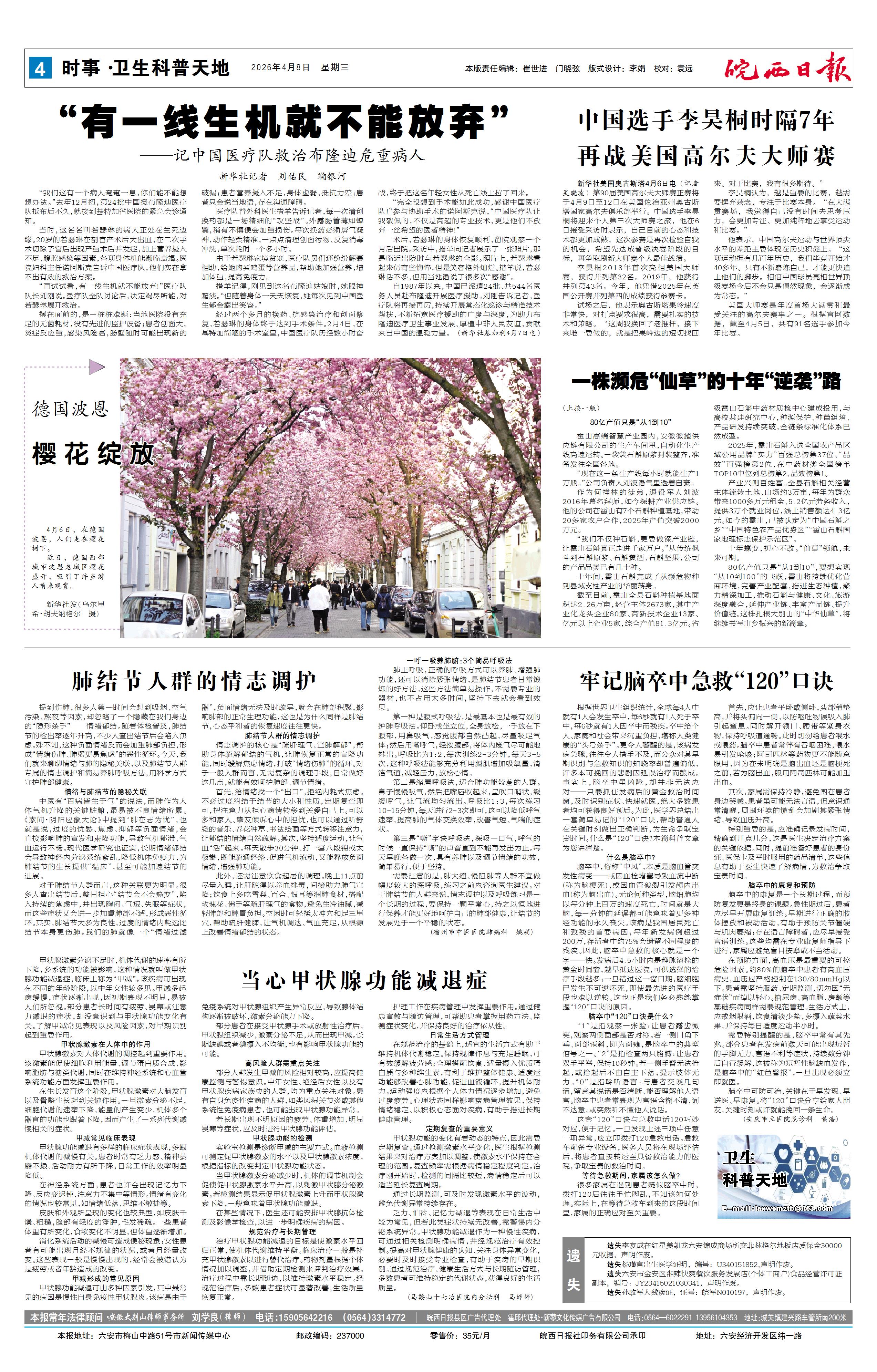 新闻 时间:2026年04月08日 来源:皖西日报