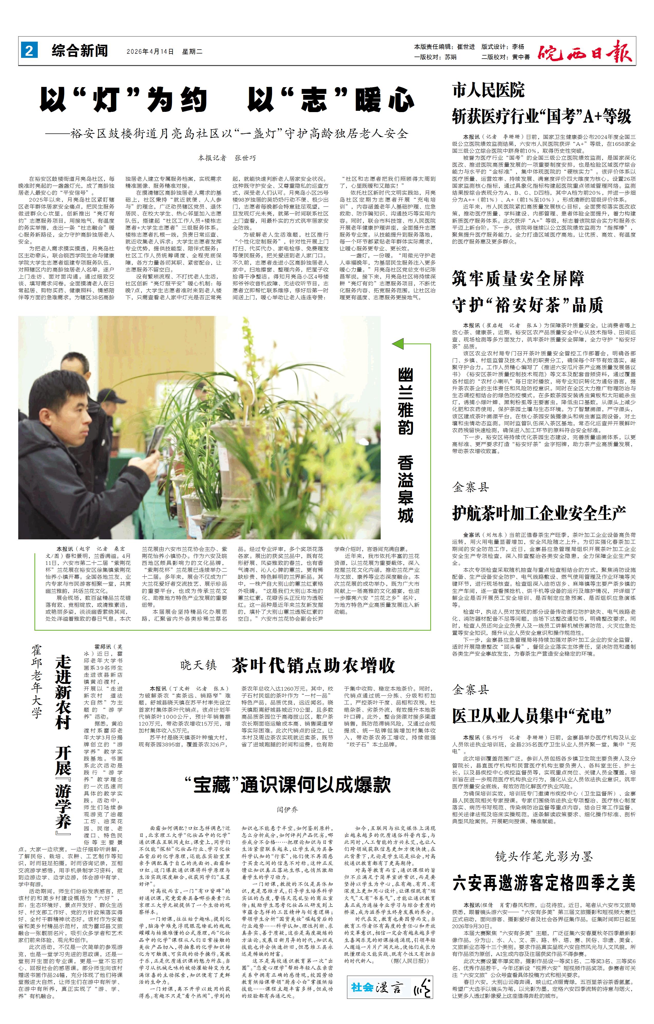 新闻 时间:2026年04月14日 来源:皖西日报