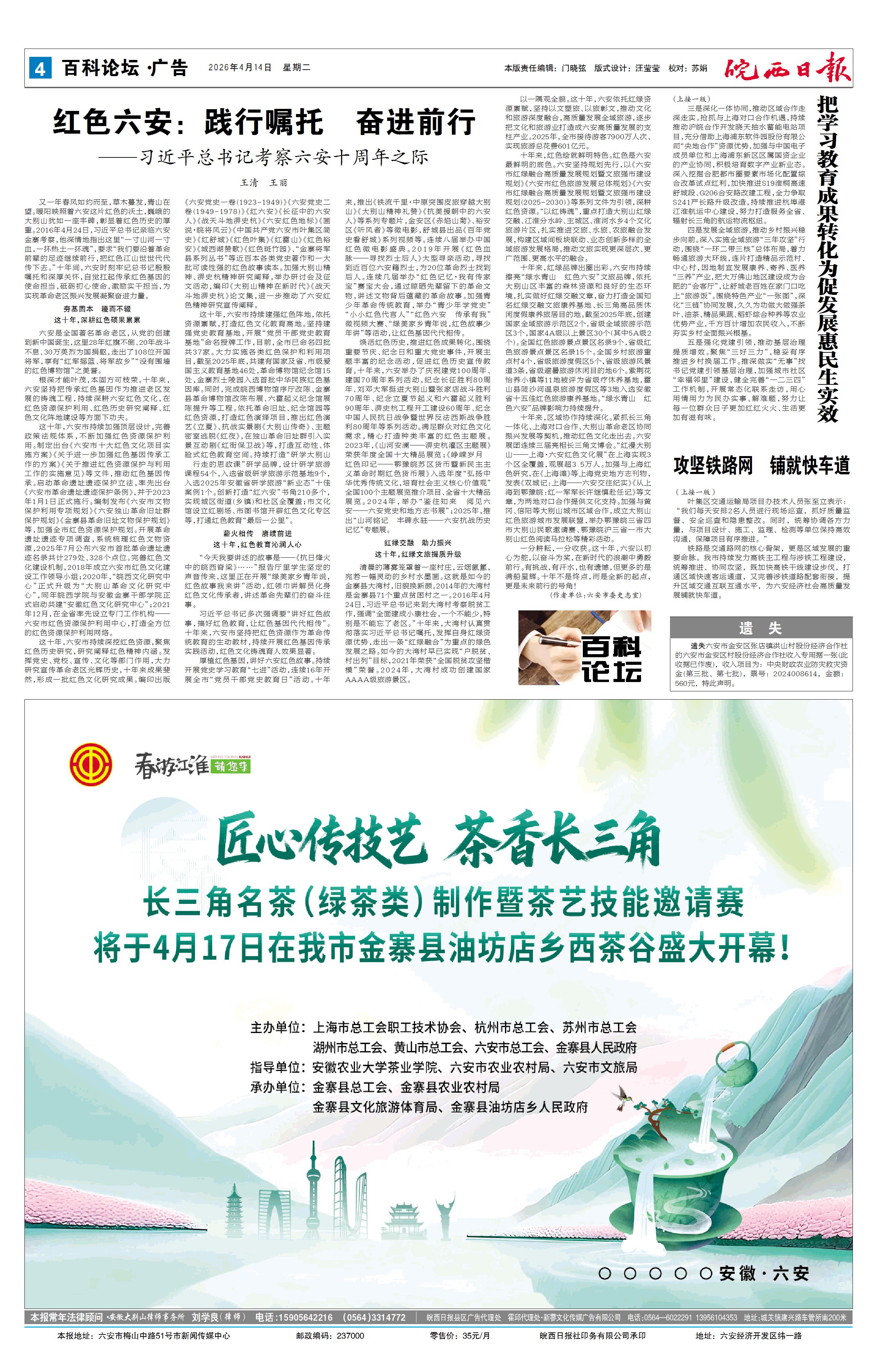 新闻 时间:2026年04月14日 来源:皖西日报