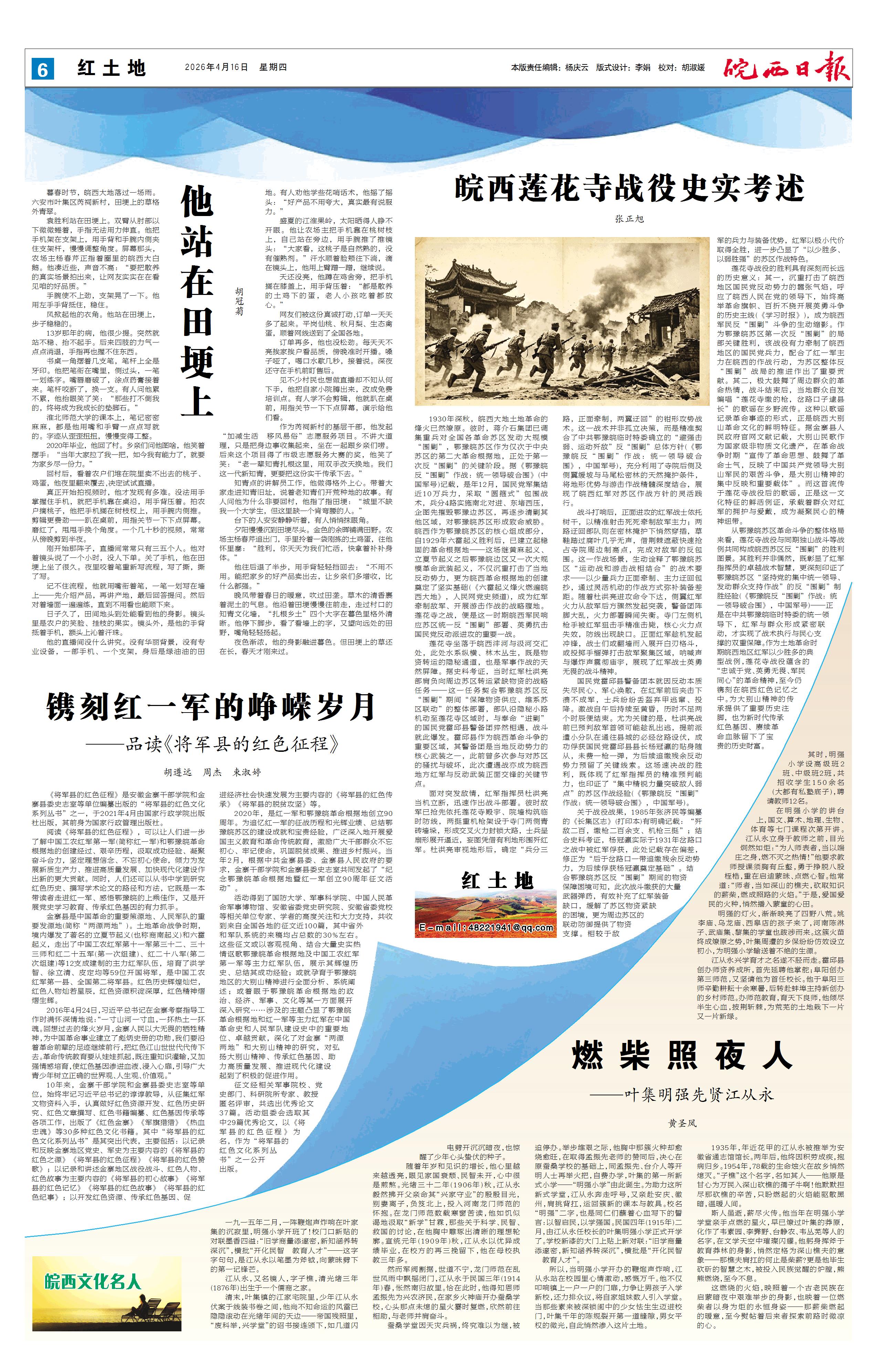 阅读《将军县的红色征程》,可以让人们进一步了解中国工农红军第一军(简称红一军)和鄂豫皖革命根据地的创建经过、艰辛历程,汲取成功经验、凝聚奋斗合力,坚定理想信念、不忘初心使命,倾力为发展新质生产力、推进高质量发展、加快现代化建设作出新的更大贡献。同时,人们还可以从书中学到研究红色历史、撰写学术论文的路径和方法,它既是一本带读者走进红一军、感悟鄂豫皖的上乘佳作,又是开展党史学习教育、传承红色基因的有力抓手。